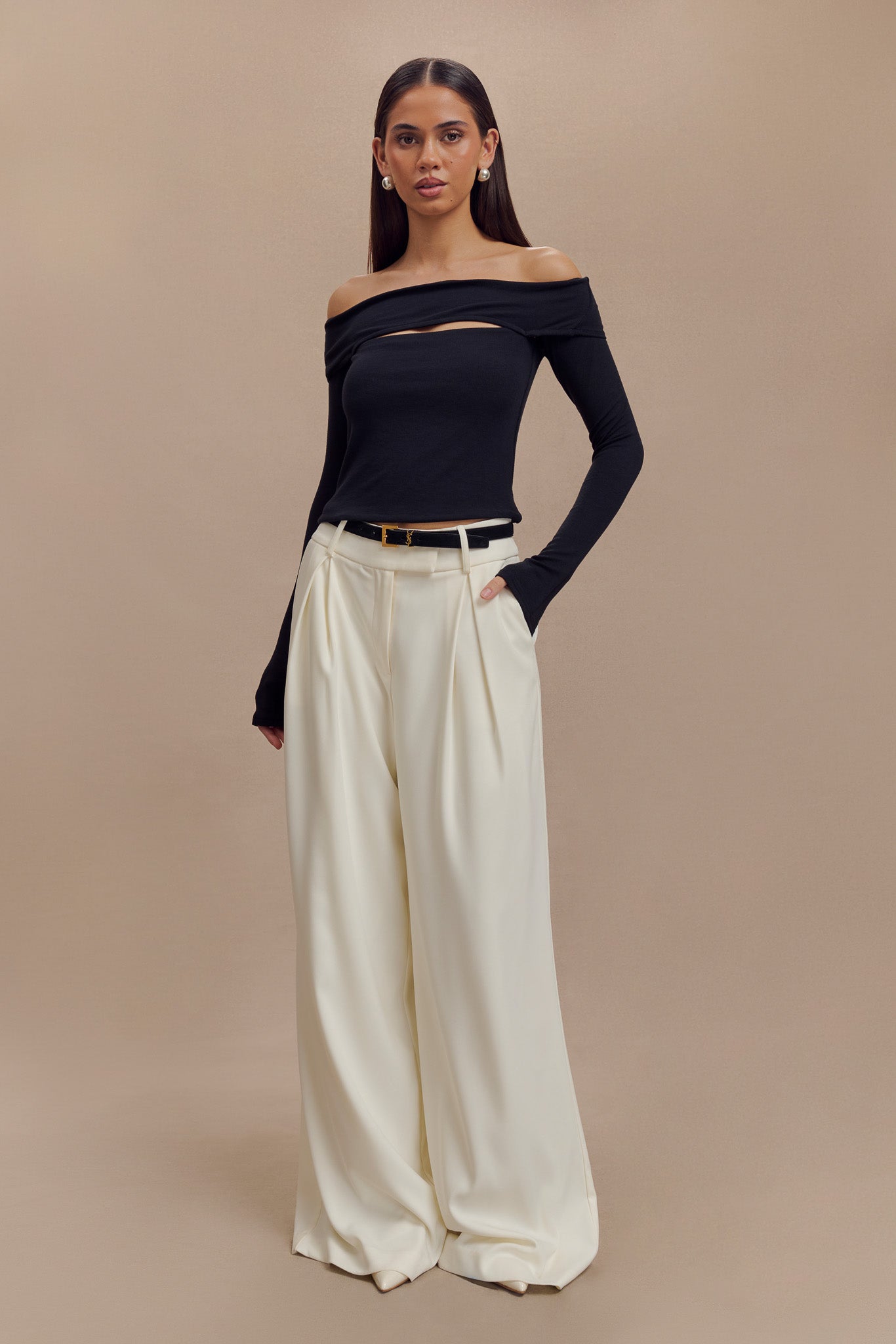 The BRIAH Cut Out Modal Long Sleeve Top is a captivating addition to any stylish wardrobe, effortlessly blending sophistication with a hint of daring. This top features an elegant Bardot neckline and a striking front cutout detail, adding a touch of modern edge to its classic design. With long sleeves and a bodycon fit, it flatters the figure while offering a sleek, elongated silhouette. The bodice is lined for comfort and coverage, while the sleeves remain unlined, maintaining a lightweight feel. Perfect for pairing with tailored trousers, the Briah Top creates a refined yet fashion-forward ensemble ideal for both professional and evening wear.